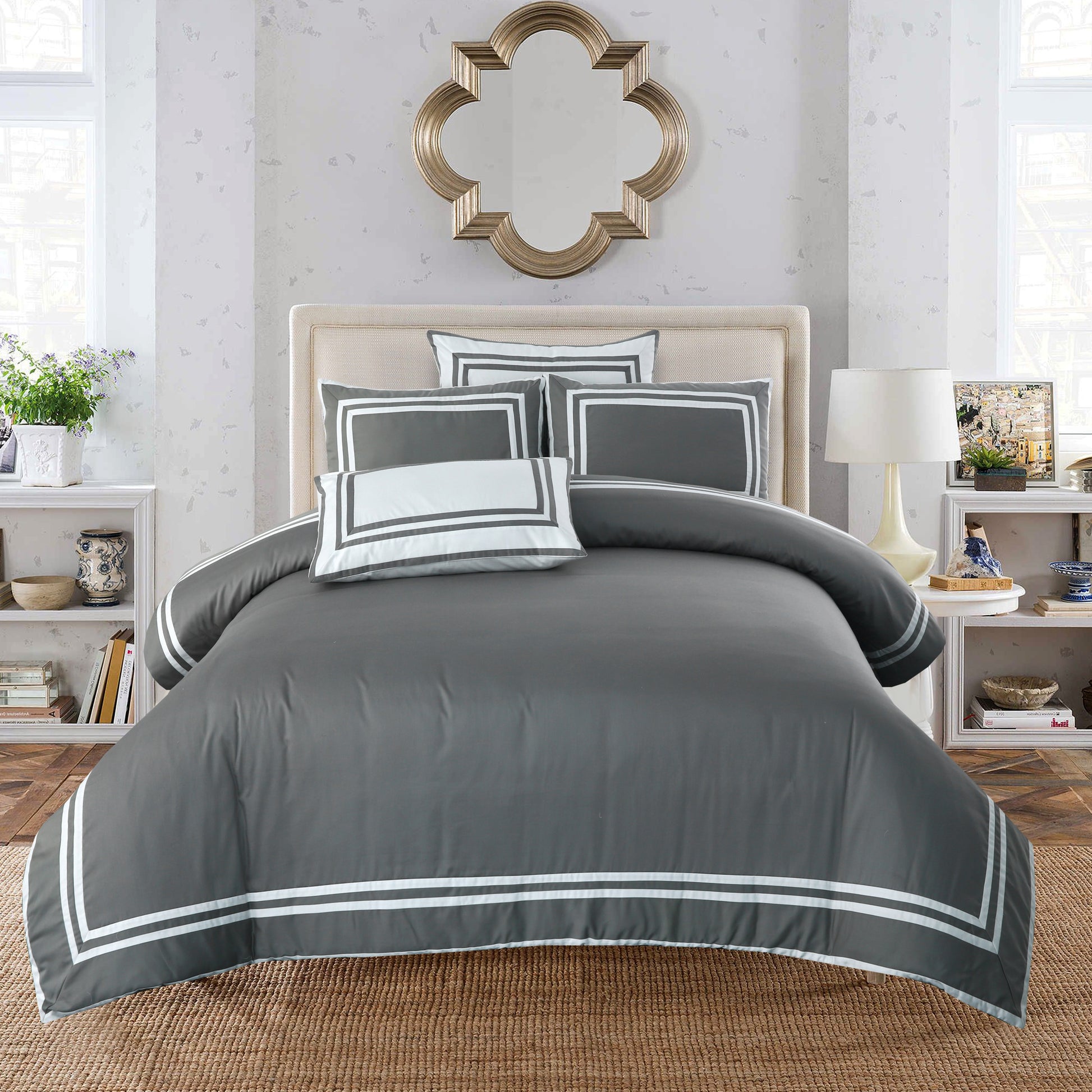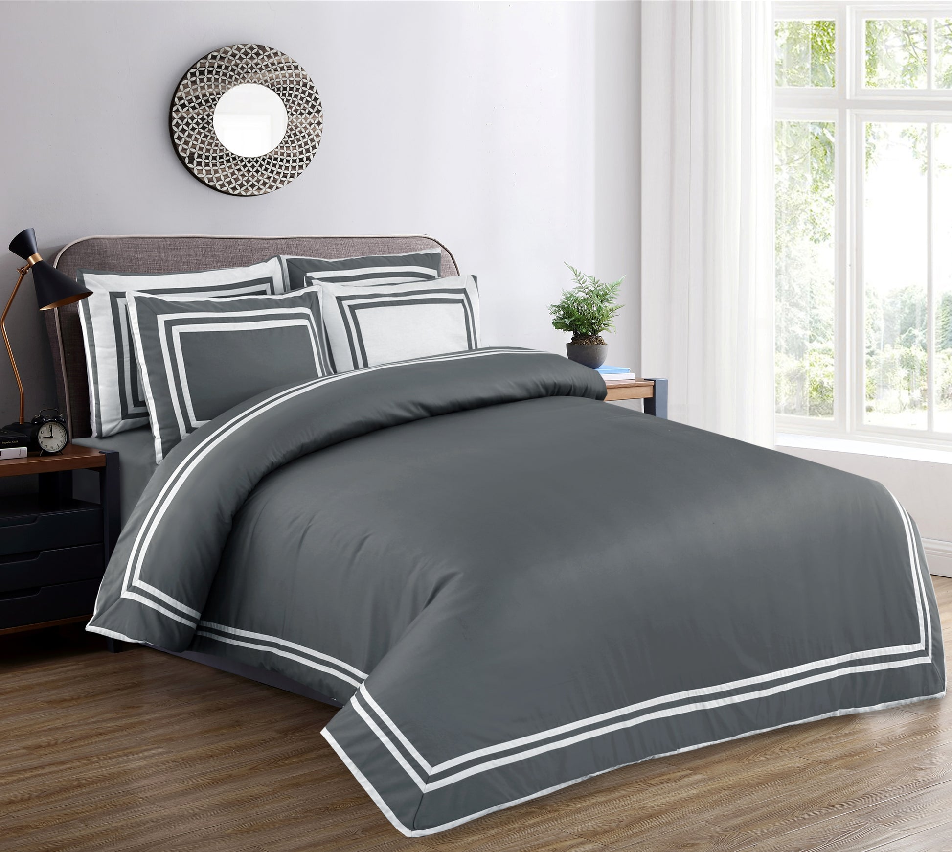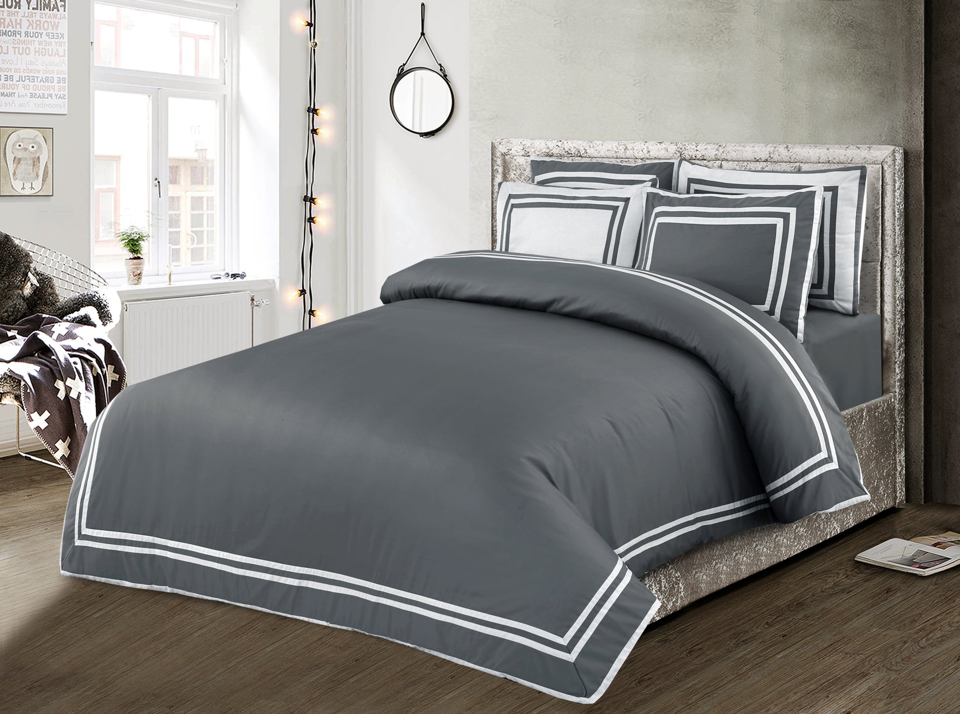 طقم مفرش فندقي مطرز قطن ساتان بدون حشوة 6 قطع