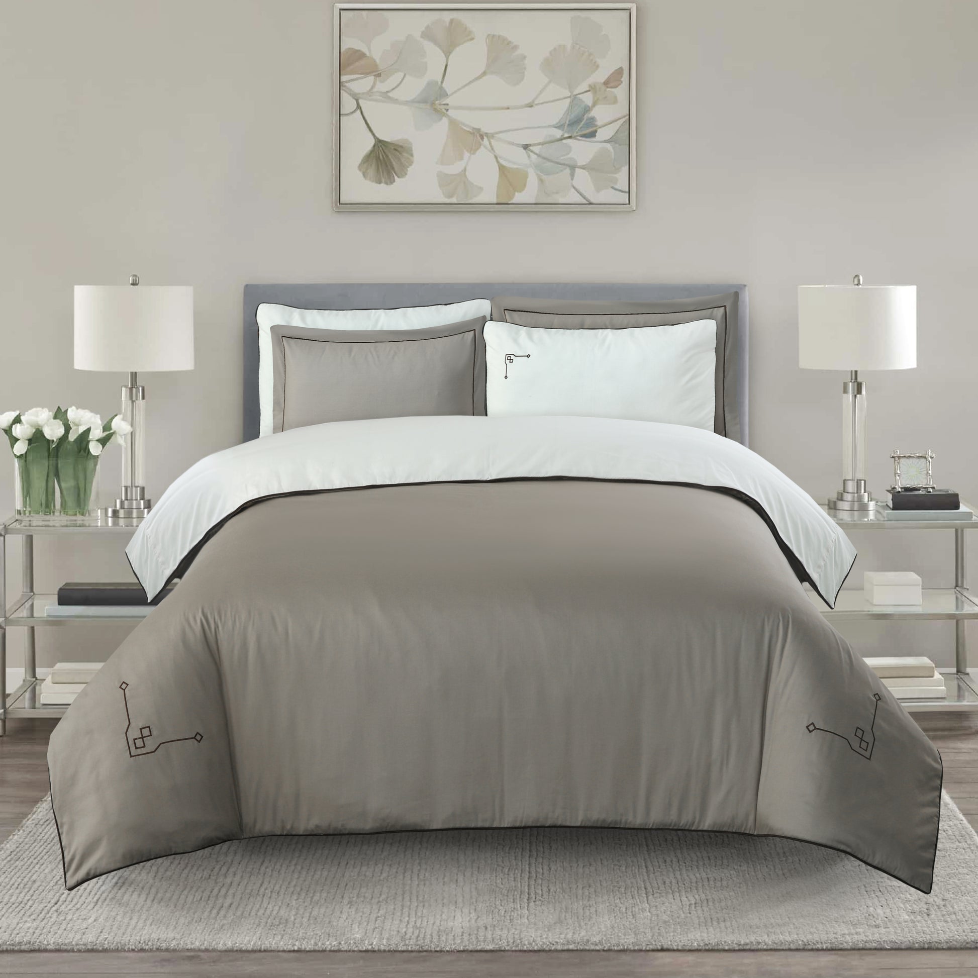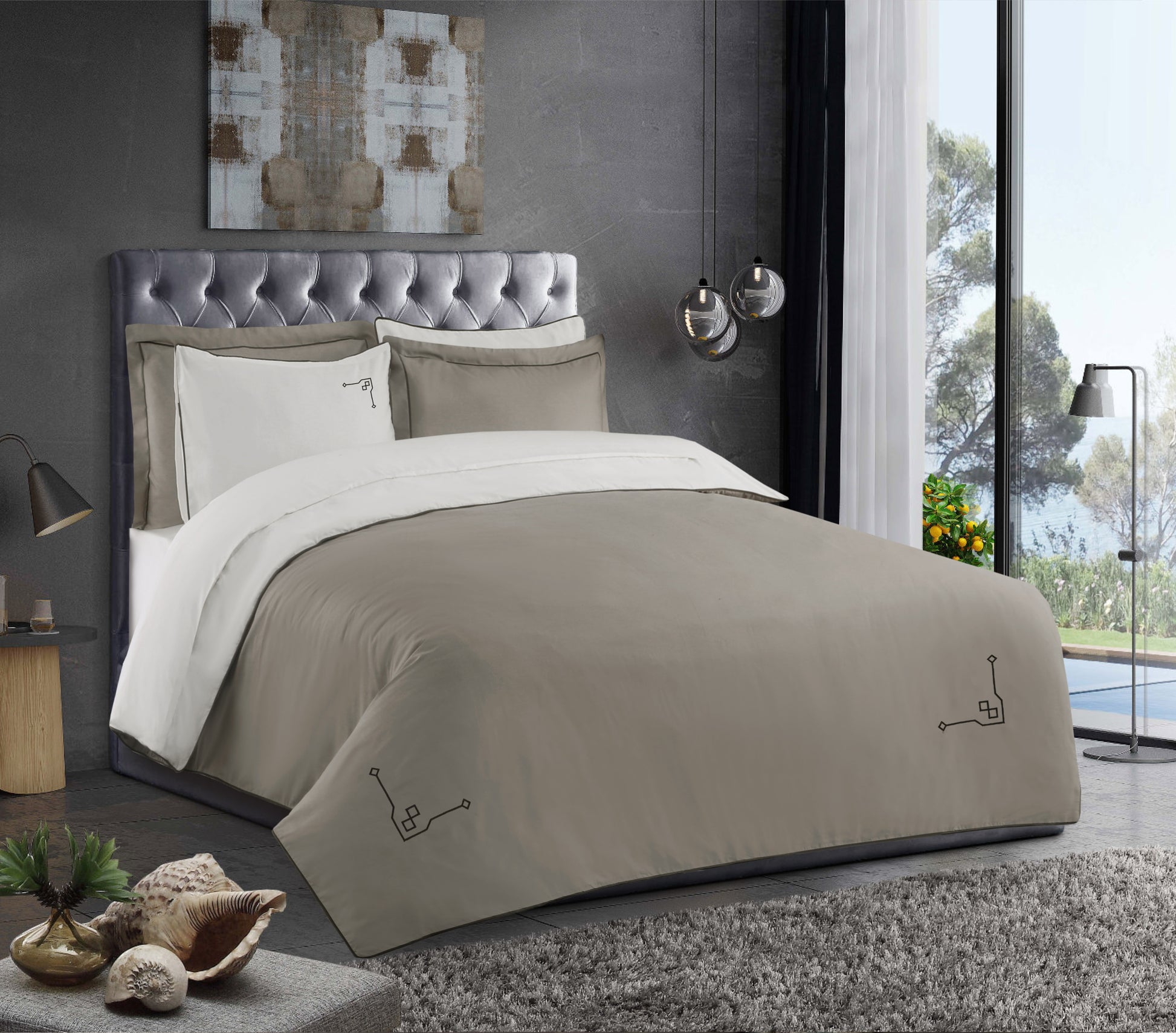 طقم مفرش فندقي مطرز قطن ساتان بدون حشوة 6 قطع